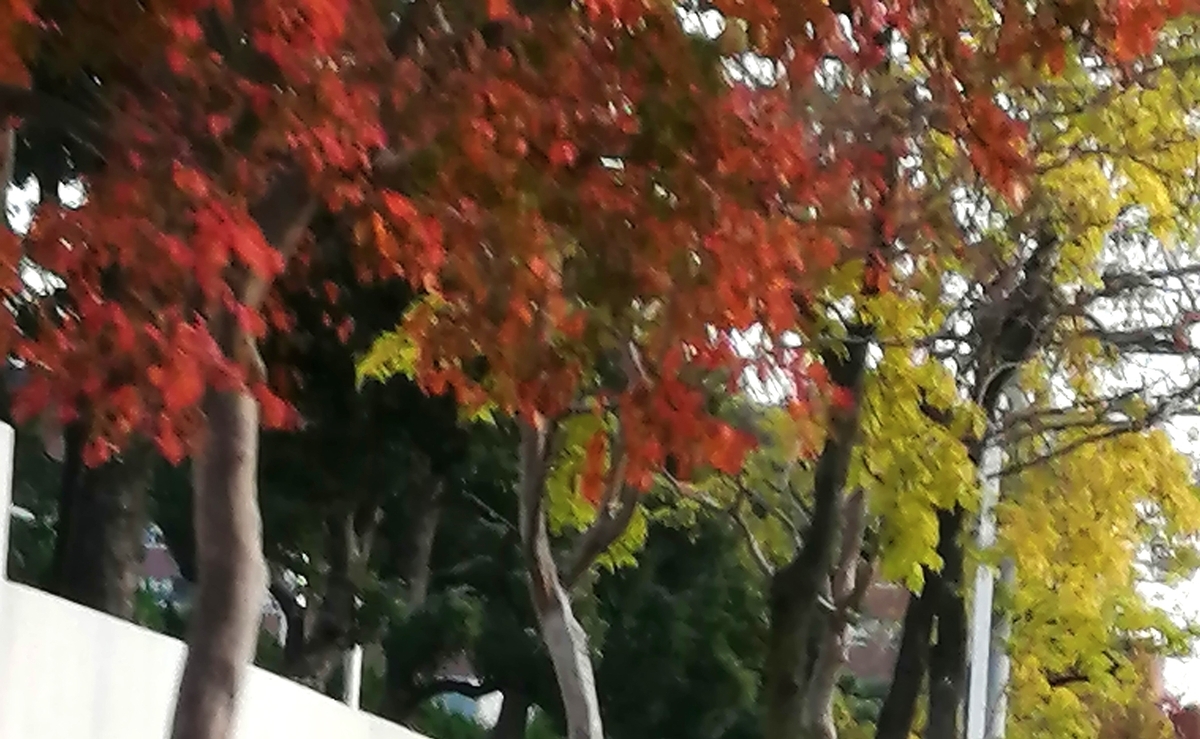 赤、黄、青とパレットをぶち開けた様は今しか見られない景色